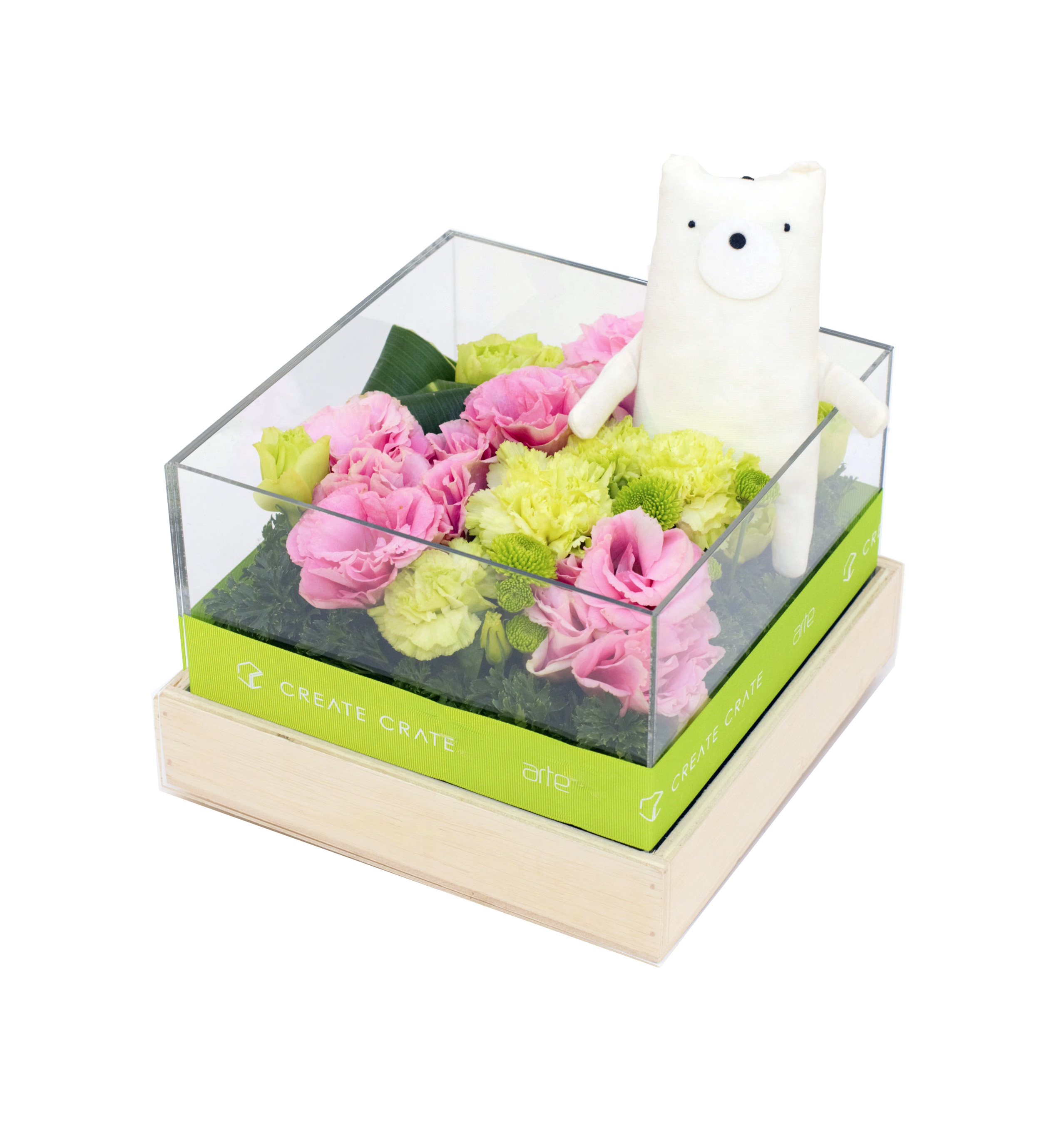 Send beary hugs that will certainly endow the person receiving this with sweet, relaxing whiffs of aromatherapy. The much sought after White Bear Aromatherapy Doll by BREATHE stands stall amidst a garden of pink eustoma, green carnation, snow white leaf, green button poms, fish leaf and oasis.