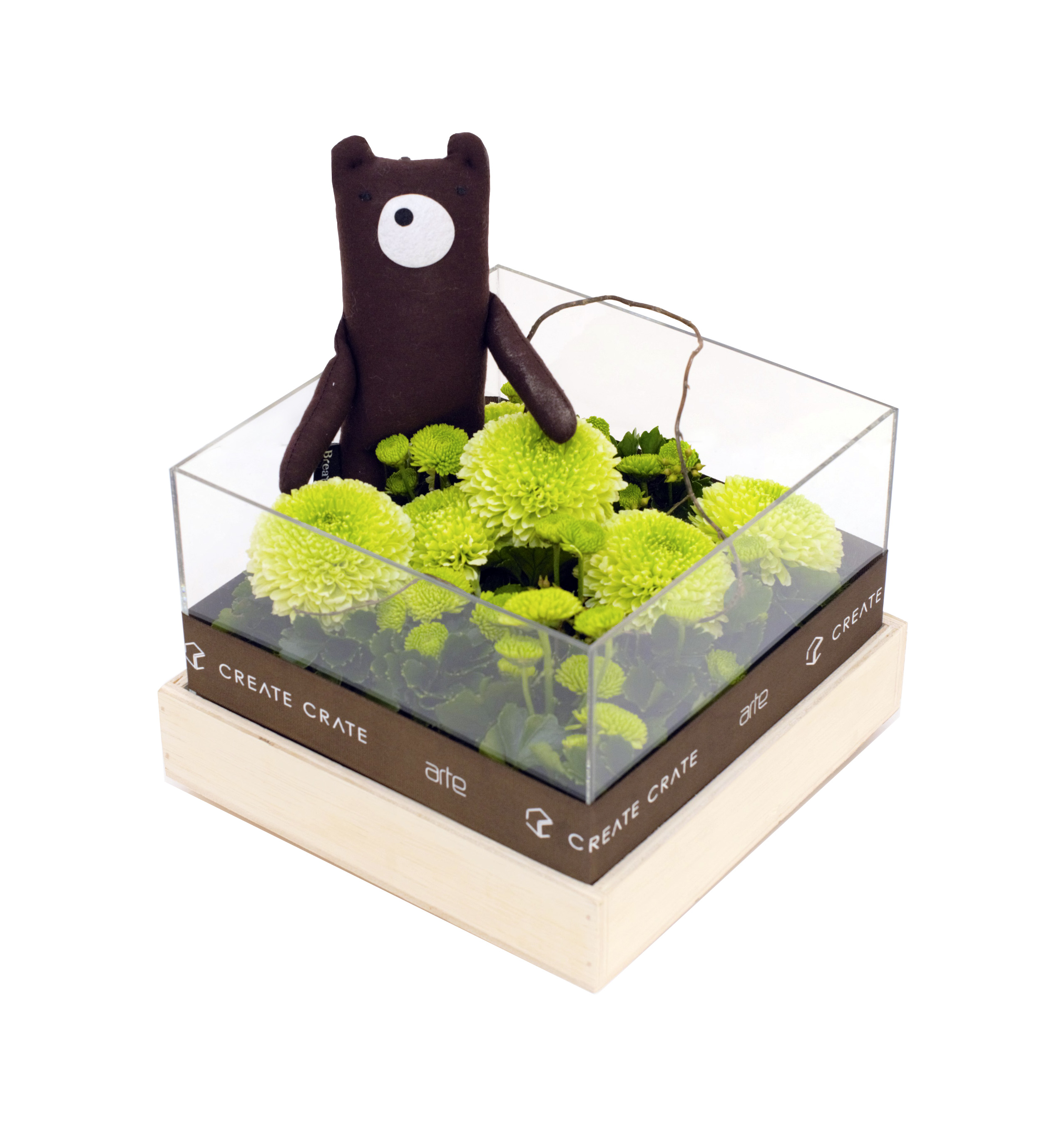 Embrace the sturdy Dark Brown Aromatherapy Doll by BREATHE to relax in its scented comfort. The cute and cuddly setting in the Create Crate will certainly be eye-candy. A mesmerising display of green ping pong chrysanthemum, green button poms, salix, fish leaf and oasis define its signature blooms.