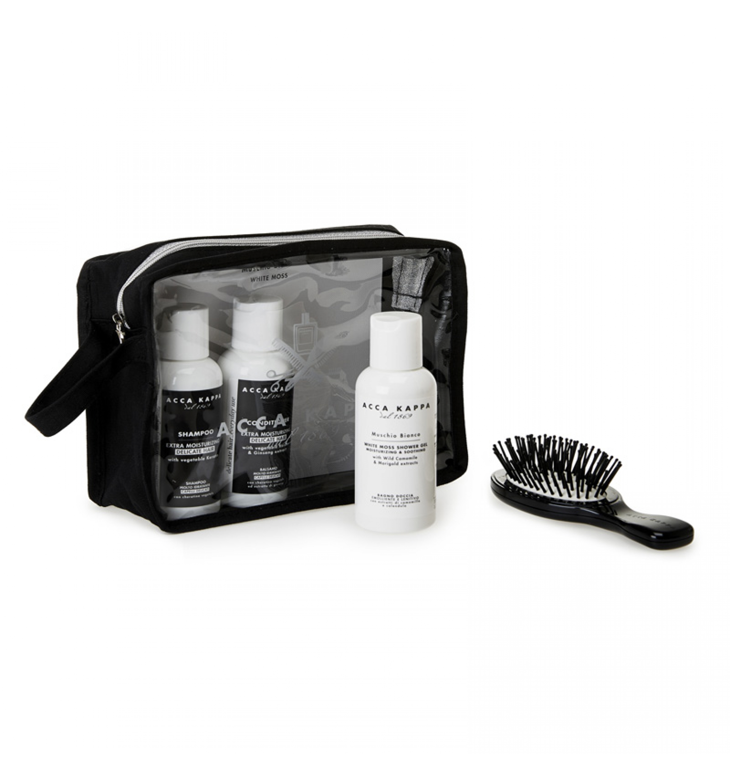 Perfect for travel, ideal for carry-on luggage, our White Moss travel set includes travel sized shower gel, shampoo, conditioner and travel set comb. Comes in a see through, zip-locked pouch. 3.3 fl. Oz /100ml each